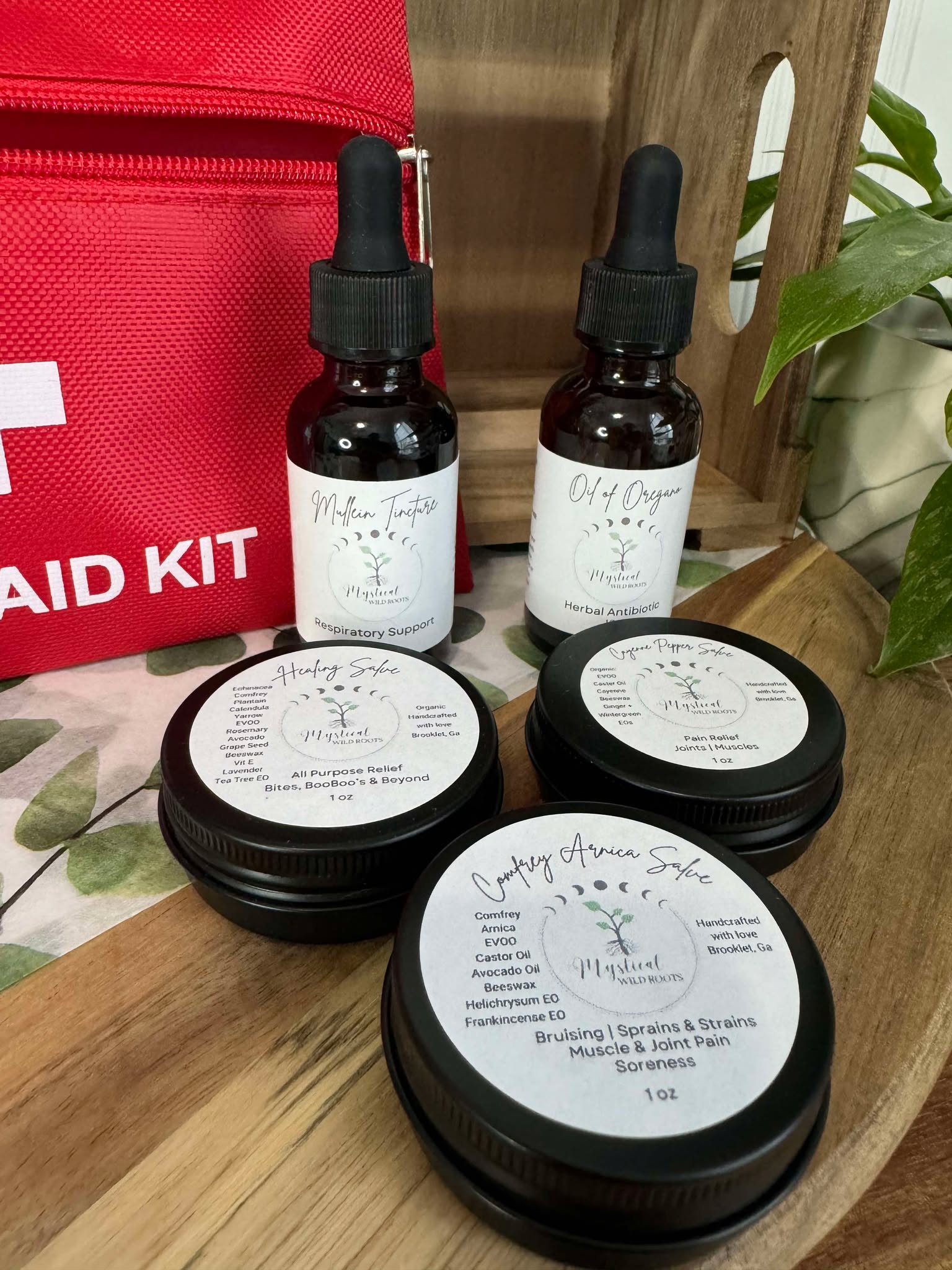 Be prepared for life’s little emergencies with the Mystical Wild Roots Herbal First Aid Kit. This thoughtfully curated set features five essential remedies crafted to support healing, soothe discomfort, and promote well-being—naturally.